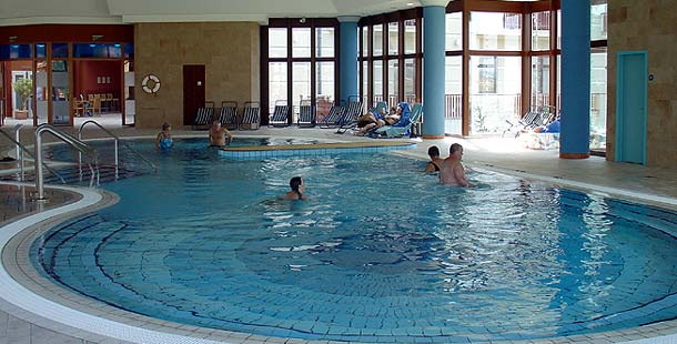 20 m-es belső úszómedence (26-28 °C), Hydro masszázs medence (32-34 °C),